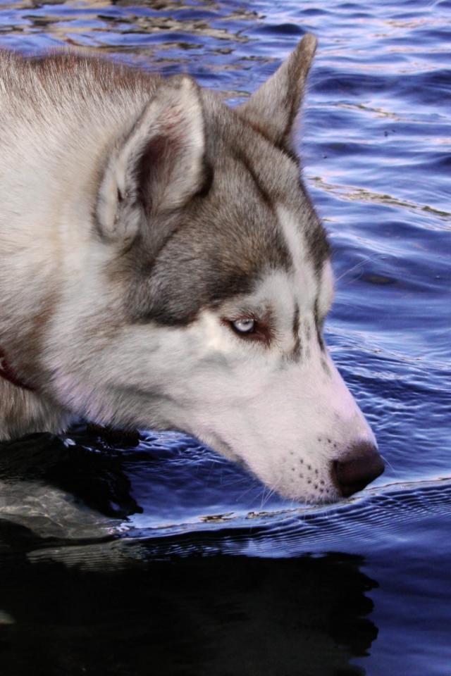 Обои Собака хаски стоит в воде