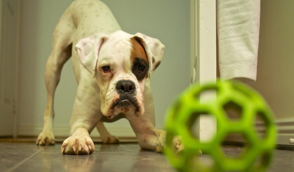 Обои Щенок с зеленой игрушкой