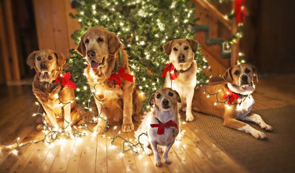 Обои Собаки празднуют Рождество