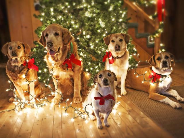Обои Собаки празднуют Рождество