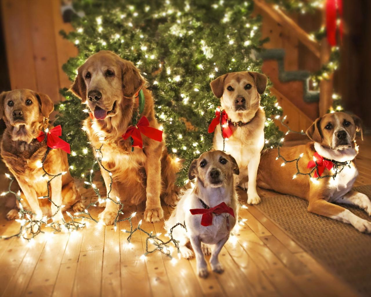 Обои Собаки празднуют Рождество
