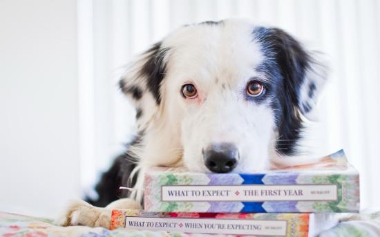 Обои Собака с книгами
