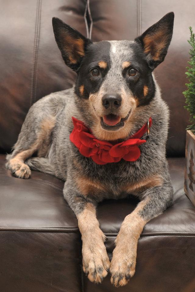 Обои Праздничная собака с бантом