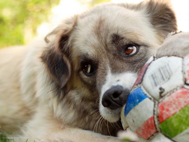 Обои Пушистая собака с мячом