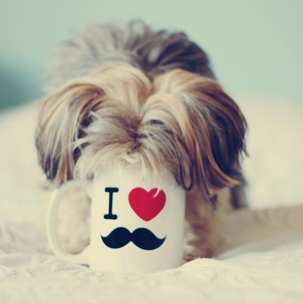 Обои Собака пьет из чашки