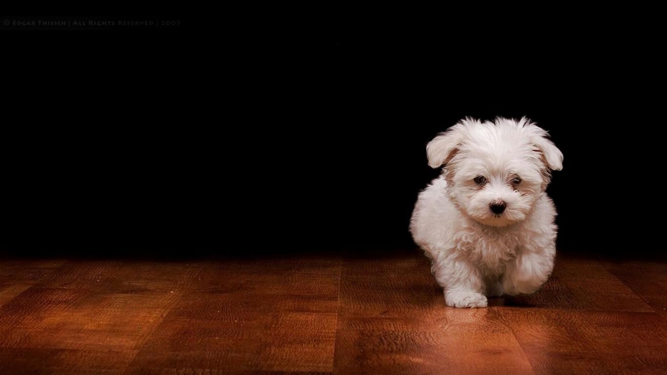 Обои Белый пушистый щенок на полу