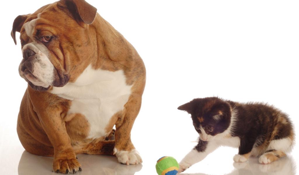 Обои Котенок и собака