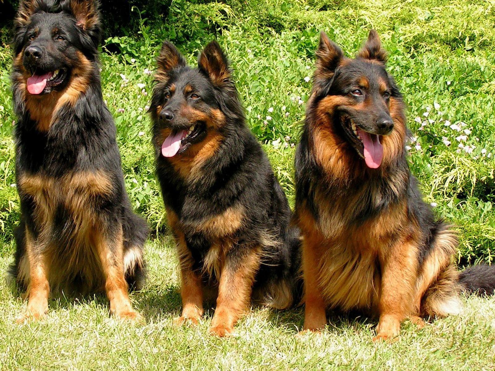 Обои Три собаки ждут команды