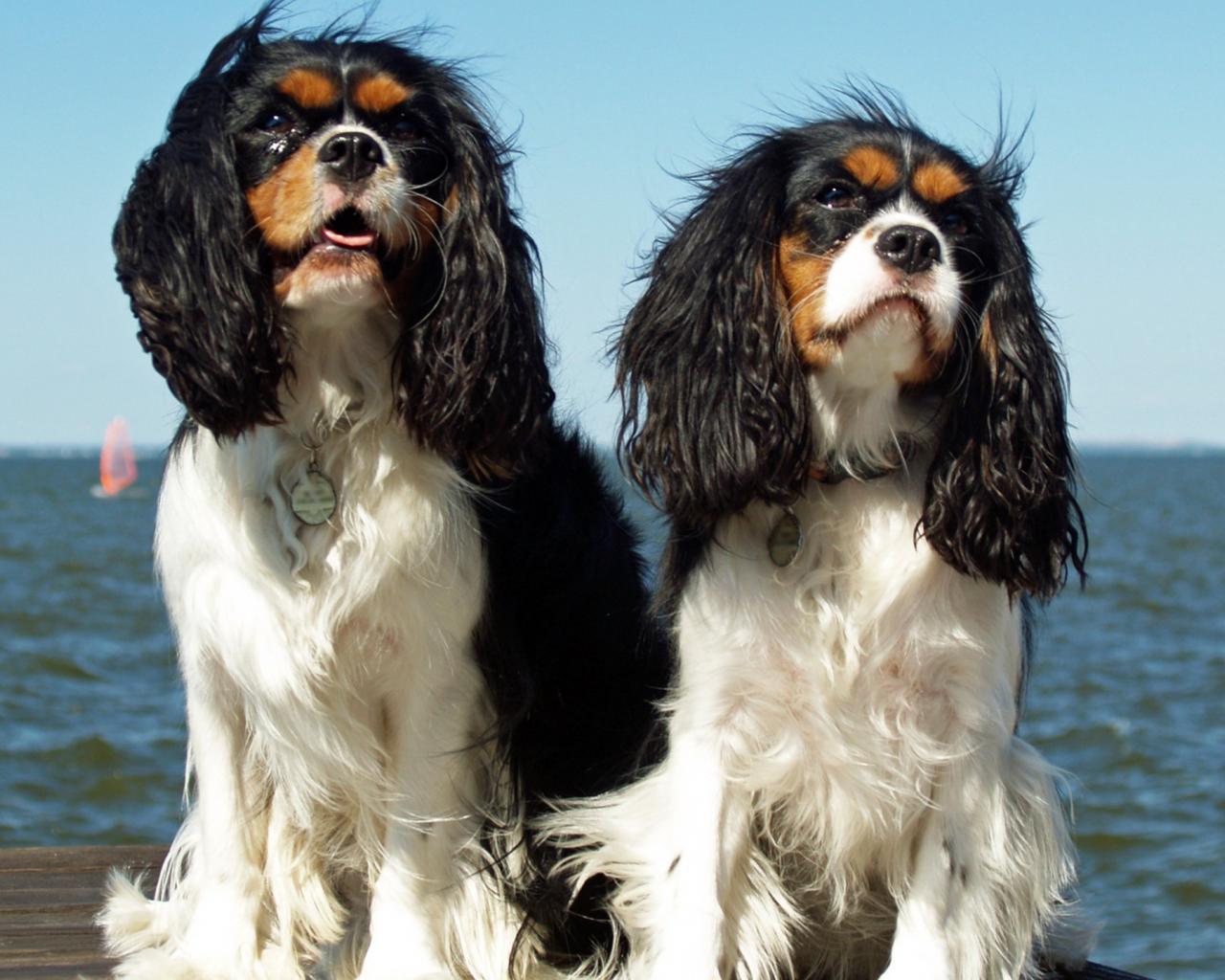 Обои Две собаки у моря