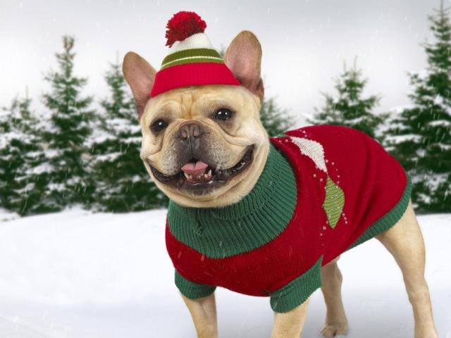 Обои Собака в зимней одежде