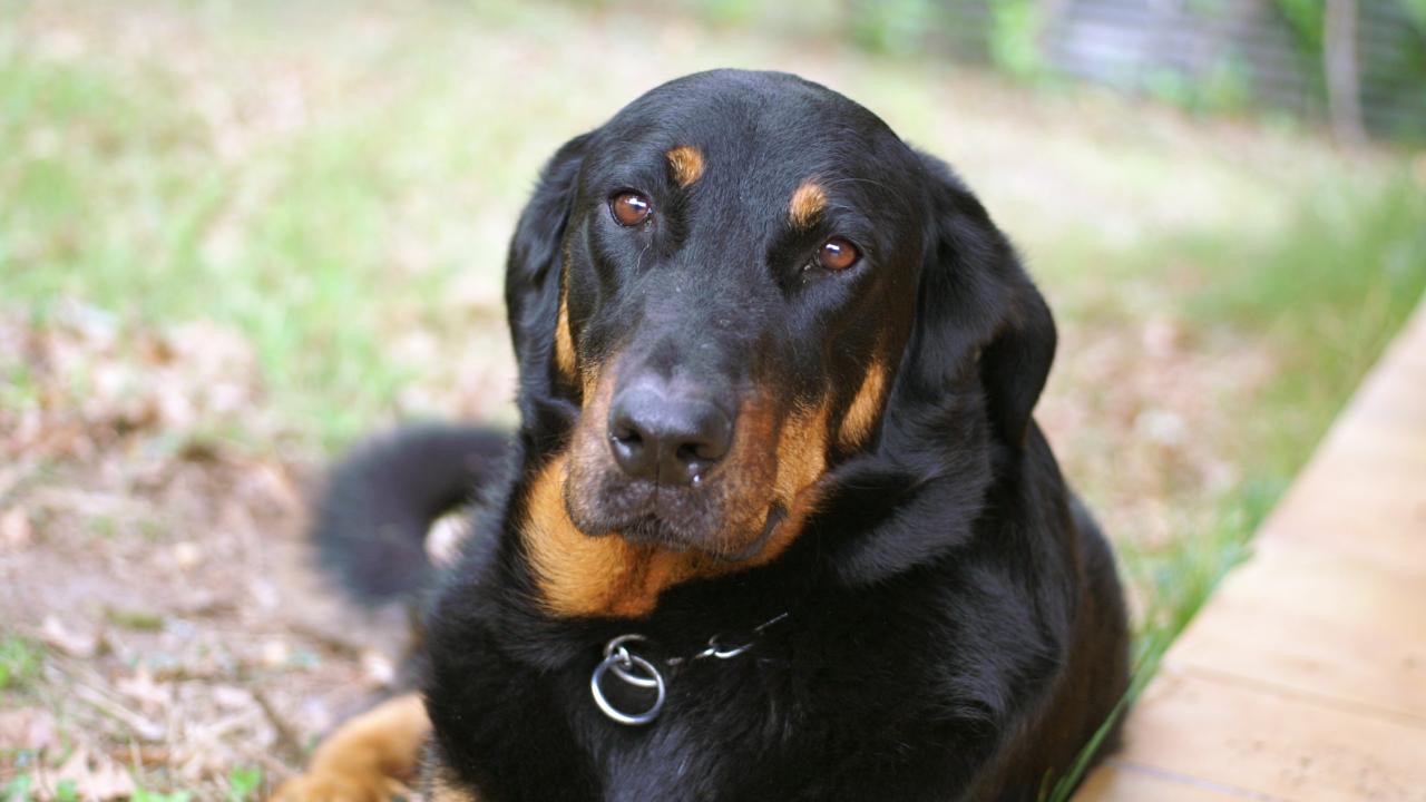 Обои Грустный взрослый босерон лежит на траве