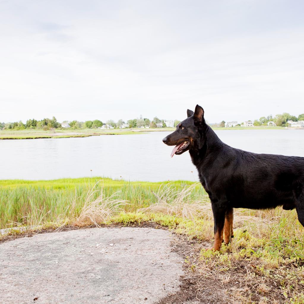 Обои Красивый босерон лежит на фоне поля