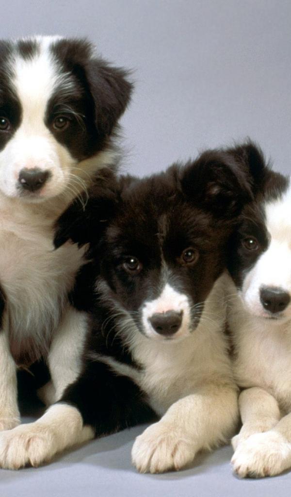 Обои Щенки бордер-колли на сером фоне