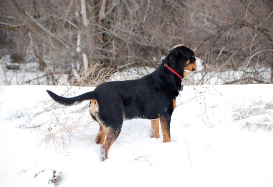 Обои Большой швейцарский зенненхунд зимой