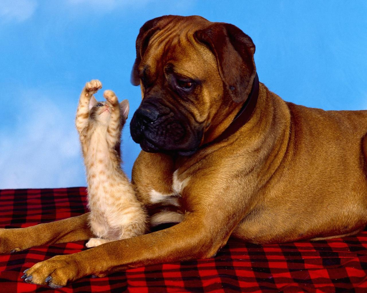 » Обои Боксёр и рыжий котёнок