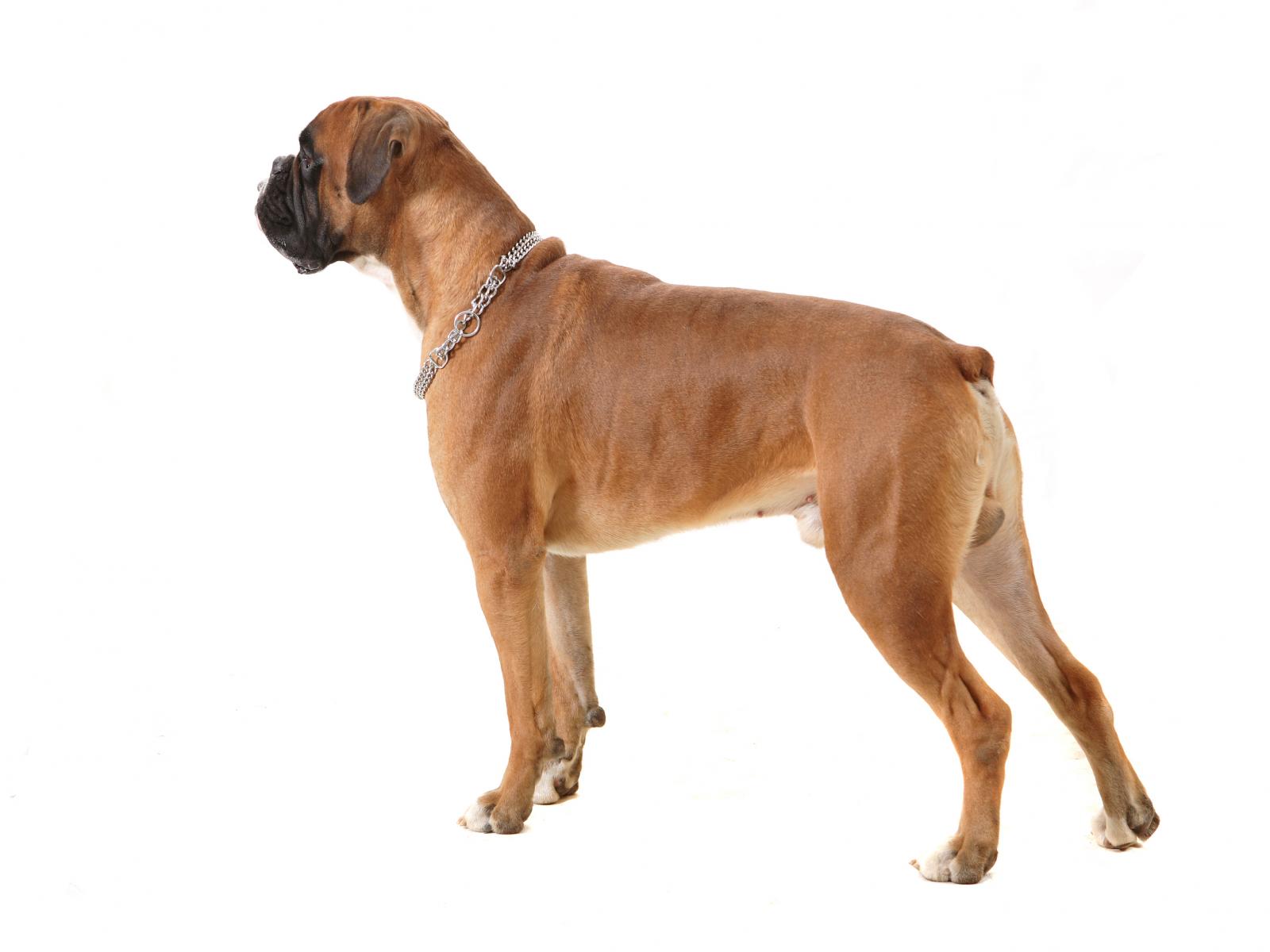 Обои Взрослый боксёр позирует на белом фоне