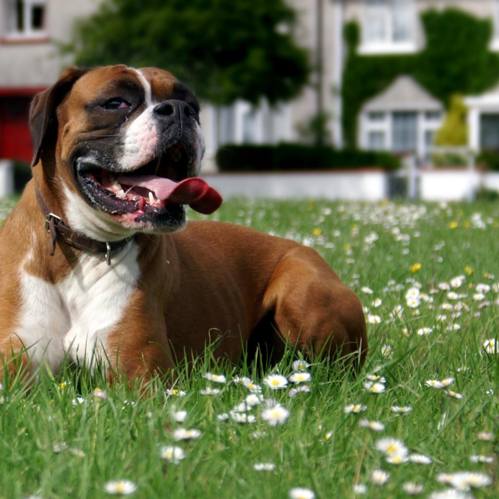 Обои Боксёр отдыхает на траве