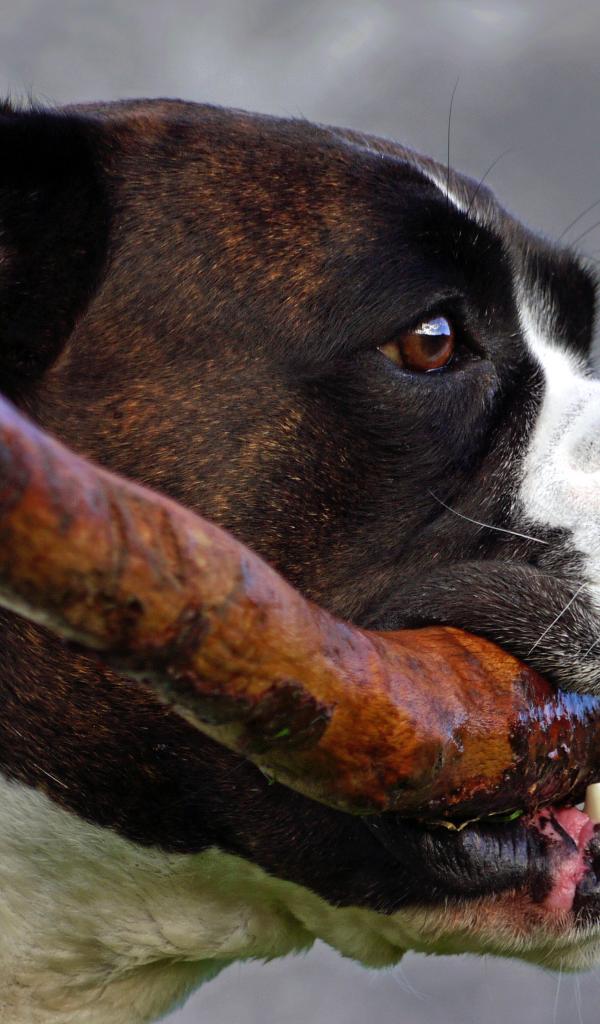Обои Боксёр с палкой в зубах