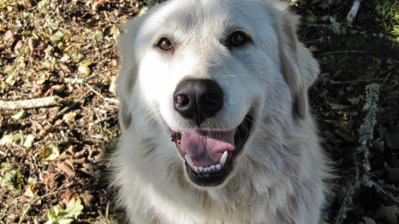 Обои Портрет счастливой большой пиренейской собаки
