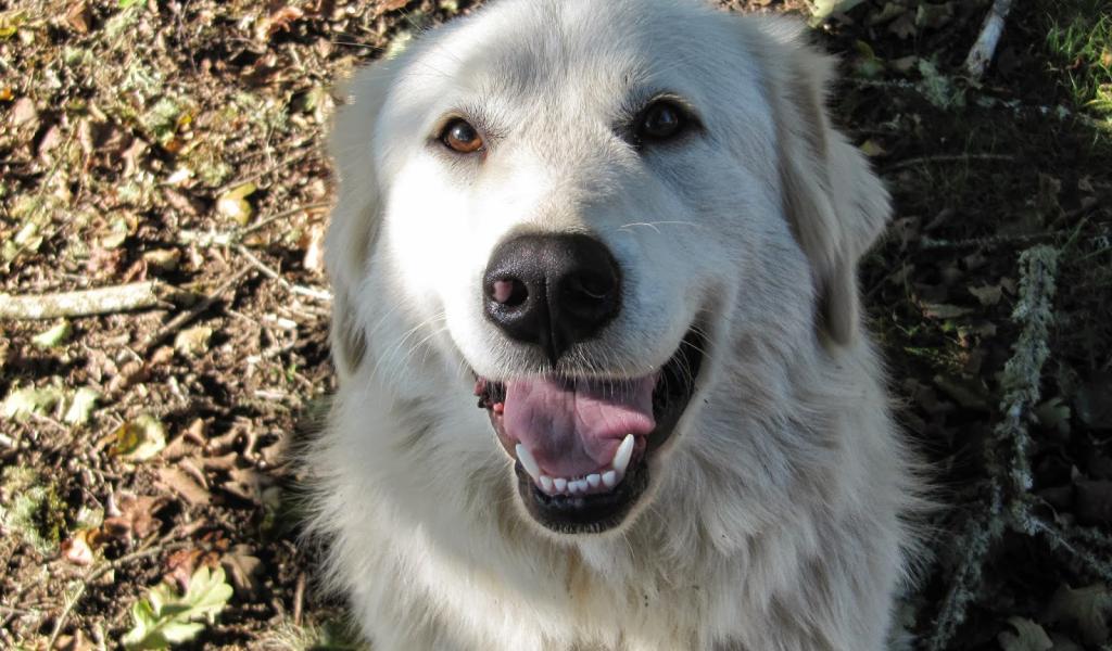 Обои Портрет счастливой большой пиренейской собаки
