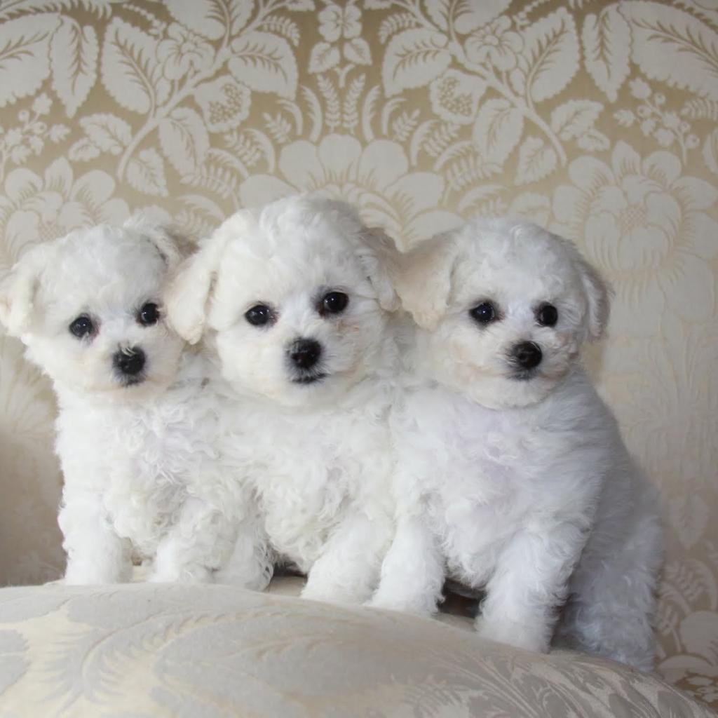 » Обои Три щенка породы бишон-фриз на диване