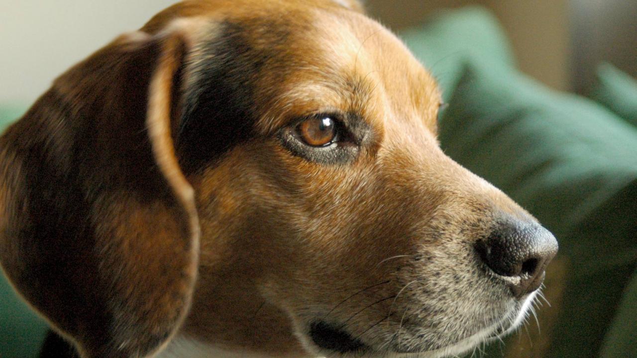 Обои Портрет серьезной собаки породы бигль