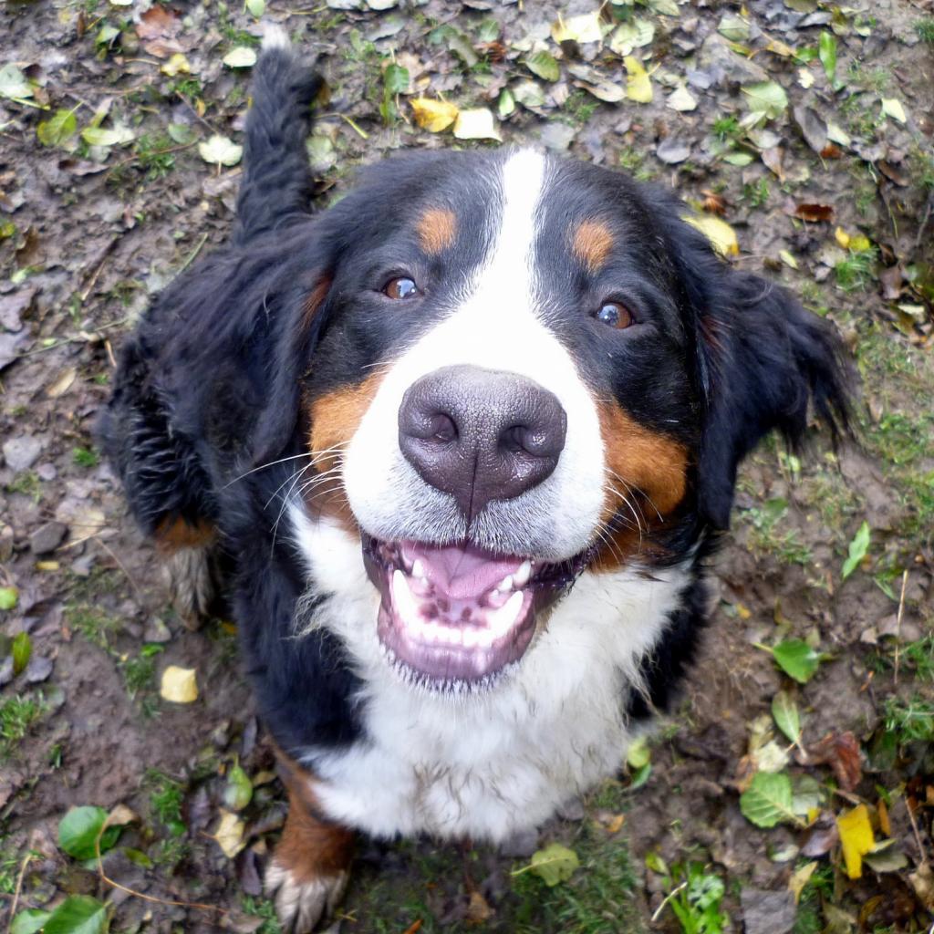 Обои Портрет улыбающейся бернской пастушьей собаки