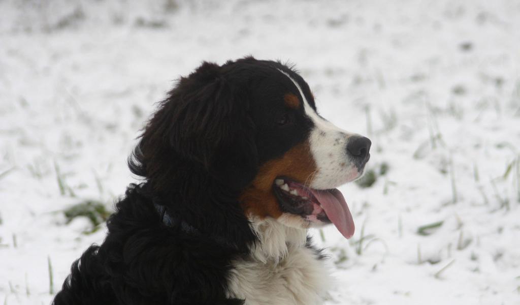 Обои Бернская пастушья собака в снегу на фоне снегу