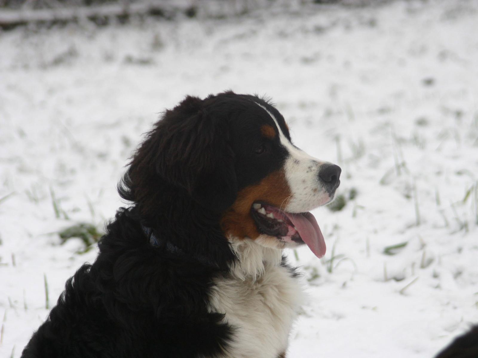 Обои Бернская пастушья собака в снегу на фоне снегу