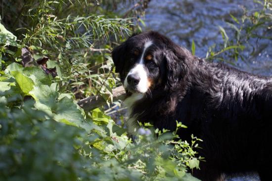 Обои Бернская пастушья собака в кустах