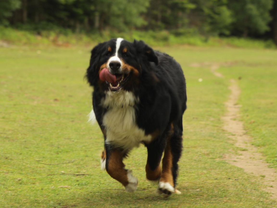 Обои Бернская пастушья собака спешит к хозяину