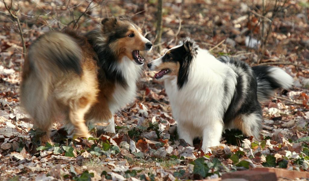 Обои Смешные собаки породы шелти играют