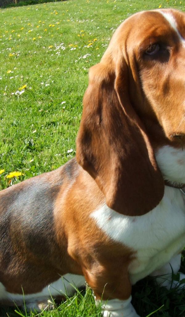 Обои Бассет-хаунд в траве