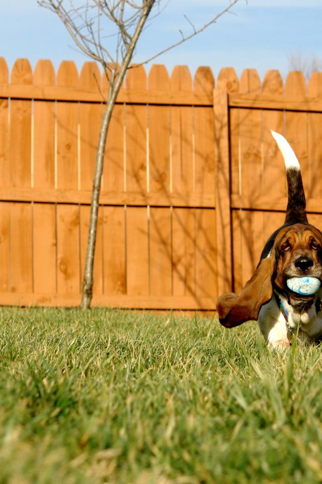 » Обои Бассет-хаунд играет с мячом