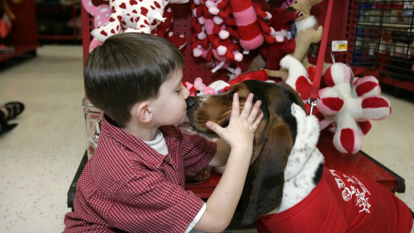 Обои Бассет-хаунд и ребёнок