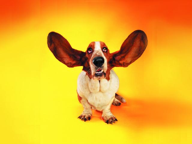 Обои Смешной бассет-хаунд на оранжевом фоне