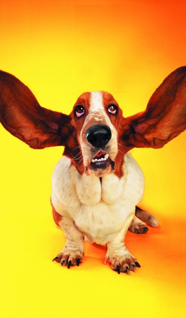 Обои Смешной бассет-хаунд на оранжевом фоне