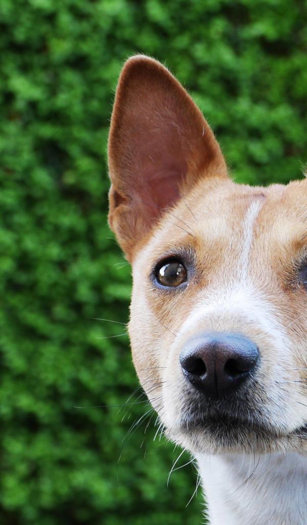 Обои Красивая собака породы басенджи на фоне кустарника