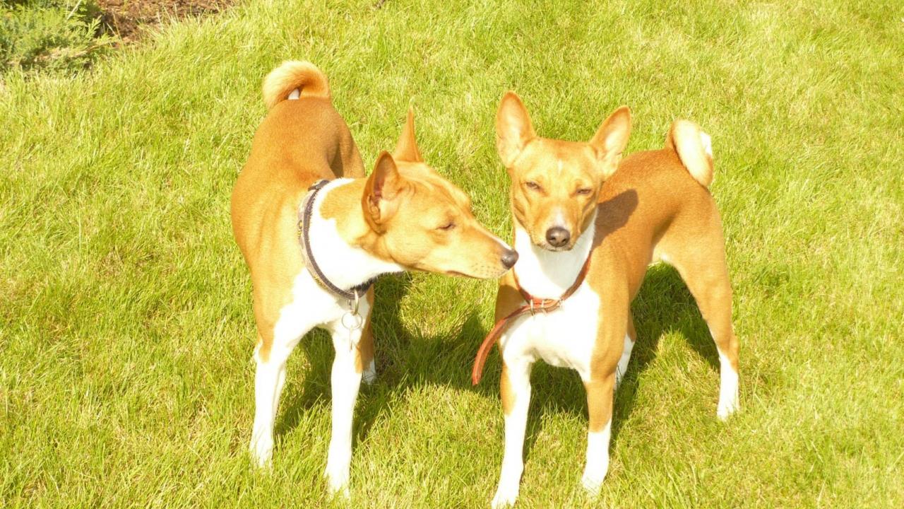 Обои Две собаки породы бишон-фриз отдыхают на траве