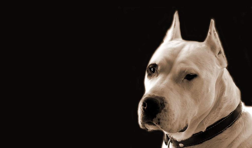 Обои Серьёзный аргентинский дог на чёрном фоне