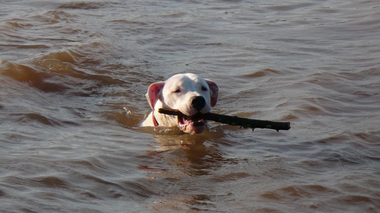 Обои Аргентинский дог несёт палку