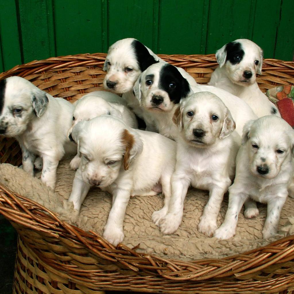 » Обои Щенки английского сеттера в корзине