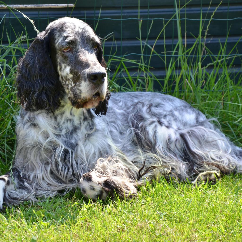 Обои Взрослый английский сеттер лежит на земле