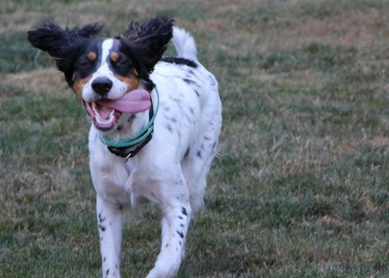 Обои Счастливый английский сеттер бежит к хозяину