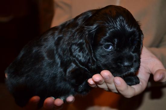 Обои Щенок американского кокер-спаниеля на руках у хозяина