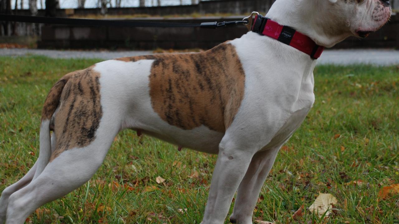 Обои Американский бульдог кого-то увидел