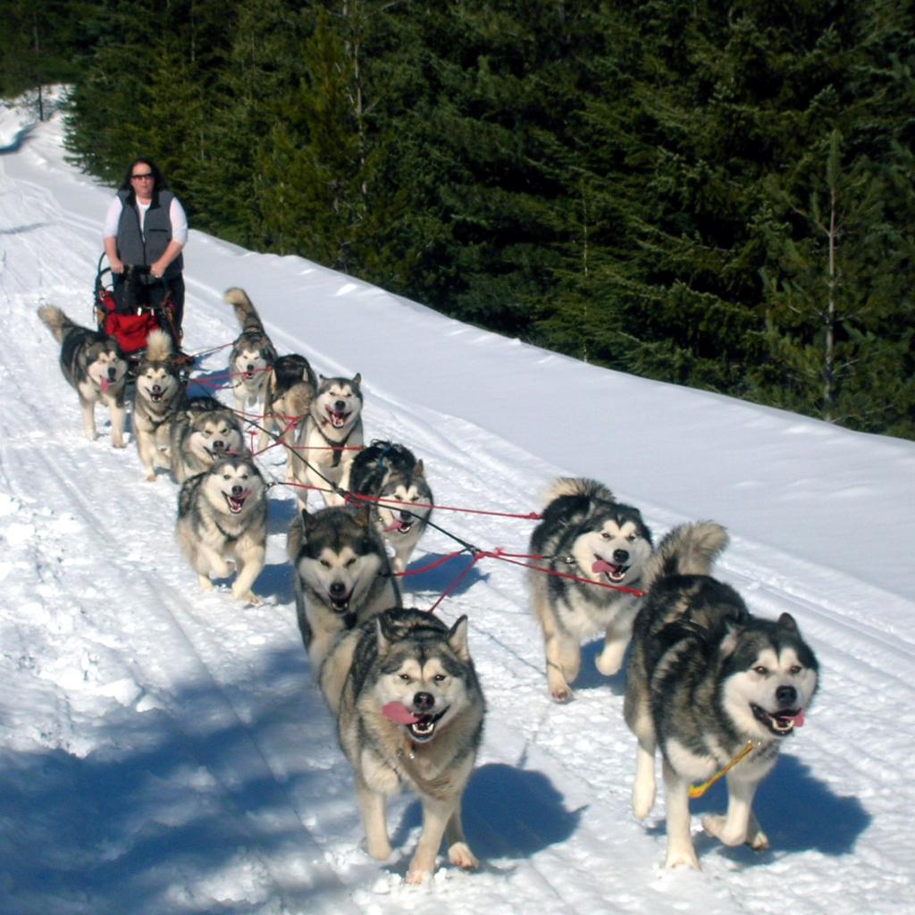 Обои Аляскинские маламуты в лесу