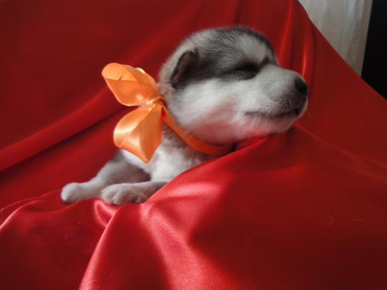 Обои Щенок аляскинского маламута с бантом