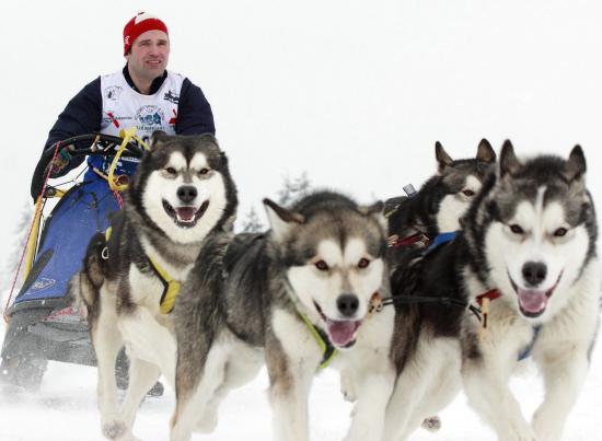 Обои Аляскинские маламуты бегут в упряжке