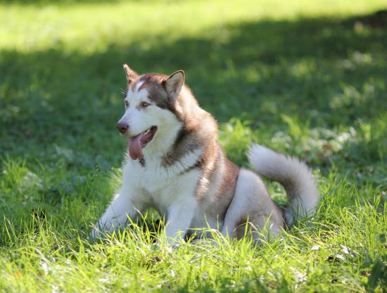 Обои Коричневый аляскинский маламут на траве